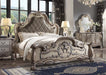 Dresden - Queen Bed - Bone Synthetic Leather & Gold Patina