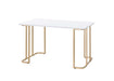 Personify your workplace with some bold, clear and strong accessories. The Estie Writing Desk boasts a clean-lined metal sled base, with gold finish enhancing its modern silhouette. White rectangle table top offers a spacious and clean workplace. Simple and full of style, the Estie Writing Desk will set the tone for the whole space. Create your own stylish work space with this desk.