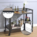 - Serving Cart, Storage: Open Compartment, Wine Bottle & Steamware Rack, Wooden Top & Shelf: Rustic Oak Finish, Metal Frame: Charcoal Finish, Caster Wheels