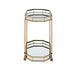 Show off your personality with the Lacole serving cart, featuring a metal frame finished in champagne and mirrored shelves for that glam appeal. The two 2.5 mm mirror shelves are the ideal place for placing your dishes and dining accessories. Roll it where need be on its softer rubber wheels and prepare to entertain.