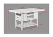 Bring a fresh look to your dining space with this breezy counter height group. The table has an array of design features, including drawers, bottle storage, and an open bottom shelf. Ladderback chairs and bench are upholstered in a Chevron pattern fabric with piping detail.