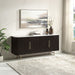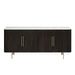 Clayten collection exudes elegance with its rectangular dining table featuring a fixed white marble top and double pedestal base with metal trim. Paired with upholstered chairs and a server with metal legs, this set blends sophistication and contemporary style. Perfect for hosting elegant dinners and creating memorable moments, the Clayten collection brings luxury and comfort to your dining space.