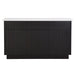 The Jaramillo server has a unique aesthetic, borrowing elements from both the mid-century modern style as well as from contemporary minimalism. Its slatted frame is uncluttered yet sophisticated in design with a stylish mixture of wood and engineered marble. Featuring three drawers and three cabinet spaces to keep your dining area clutter-free. The black finish creates an upscale look that will impress your guests.