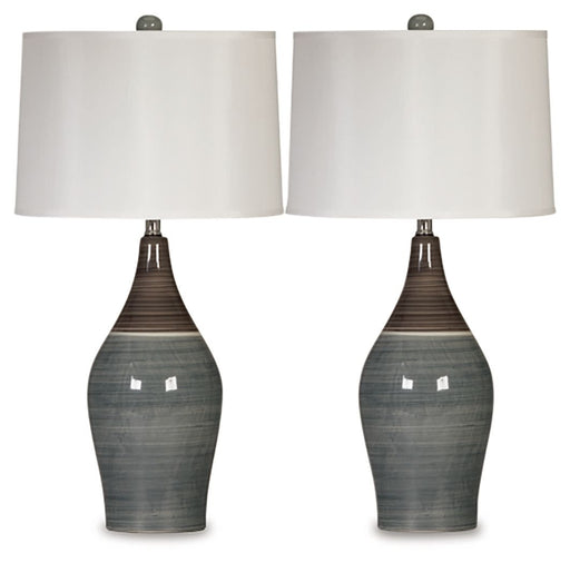 Signature Design by Ashley®Fade in the shade. Various shades of rich, earthy color round out this chic ceramic table lamp in style. Flank a clean-lined sofa or sectional with...