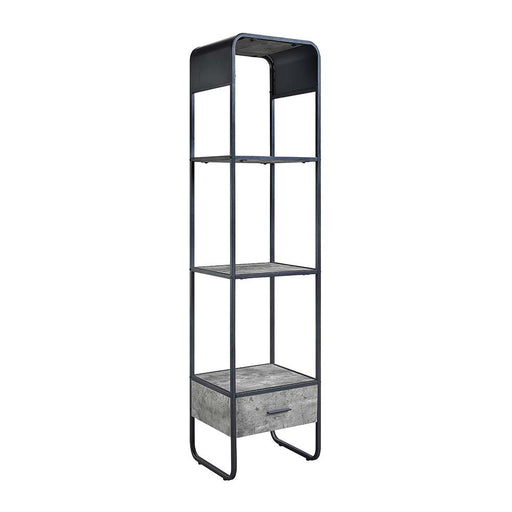 ACMEMaximize storage and convenience with the Raziela side pier unit. This piece features a concrete gray finish, a black metal frame, open shelves, an...