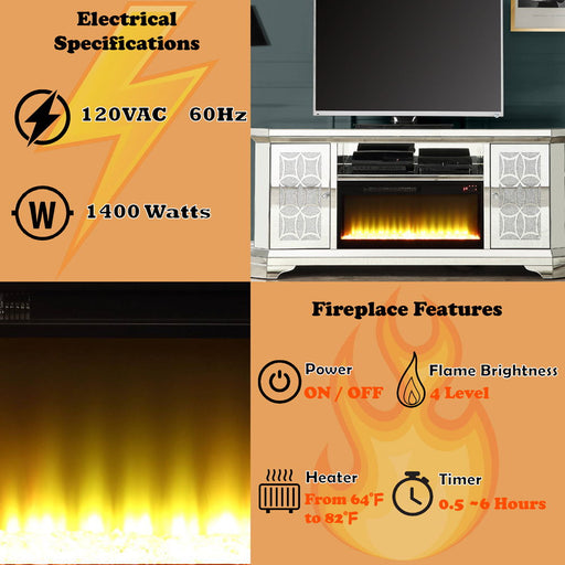 ACMENoralie - TV Stand With Fireplace - Mirrored & Faux DiamondsProduct Features LED Electric Fireplace Beveled Mirrored Frame, Faux Diamonds Inlay...