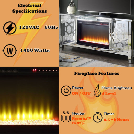 ACMENoralie - 28" TV Stand With Fireplace - Mirrored & Faux DiamondsProduct Features 2 Door Storages Adjustable Temperature Timer Function Remote C...