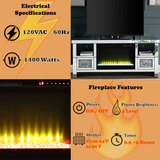 ACMENoralie - TV Stand With Fireplace & LED - Mirrored & Faux DiamondsProduct Features 2 Door Storages(Included 2 Shelf) Adjustable Temperature...