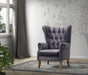 Wingback Club Chair, Tight Back & Seat Cushion (1+1) •• CONSTRUCTION] SEAT: Full Foam; Inside Frame: Wood (LVL+MDF), Foam • BACKREST: Wingback • ARMREST: Rolled Style • Wooden Tapered LEG: Natural Finish, Rbw; KD Leg ••• Material: Velvet () • Pillow NOT Included