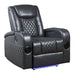Alair - Power Motion Recliner With Bluetooth, Wireless Charger & Cupholder - Blue & Black Leather Aire