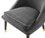 The Avalon accent chair packs a big punch in a small mid-century modern package. Small enough to fit just about anywhere but comfortable and stylish enough that you will want to place it everywhere, the Avalon is covered in lush velvet with tubular hardwood legs capped in brass color metal that adds flair and functionality.