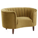 An ode to mid-century modern, the Millephri collection will help achieve this modern aesthetic. The pocket coil foam seating gives off the feel of sitting on a plush cloud. The pieces are upholstered in a gorgeous velvet fabric and feature deep channel tufting, for added texture and depth. The wooden legs provide stability and style. This collection provides an instant upgrade in any room. Available in three colors, olive-yellow, gray and, blue.