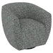 Smooth movement meets sculptural comfort in the Vega swivel chair. This barrel-back design makes a subtle statement in textured, multi-toned fabric—boucle-inspired and artisan-woven, with threads layered into warm spice or slate yarns. Built for comfort, Vega features a sinuous spring seat, supportive foam cushion, and 360-degree swivel base in a compact footprint that works anywhere from reading corners to bedroom nooks. Whether paired with modern lines or vintage finds, Vega brings adaptable style with a cozy, collected feel.
